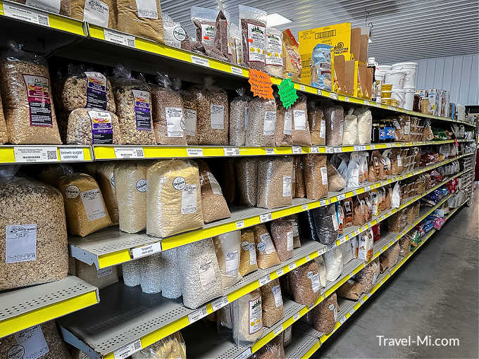 You can get refrigerated food items and TONS of bulk items including beans, spices, flour, brownie mix, pie ingredients, and lots more. I like to buy my spices there such as lemon pepper and minced onion.
