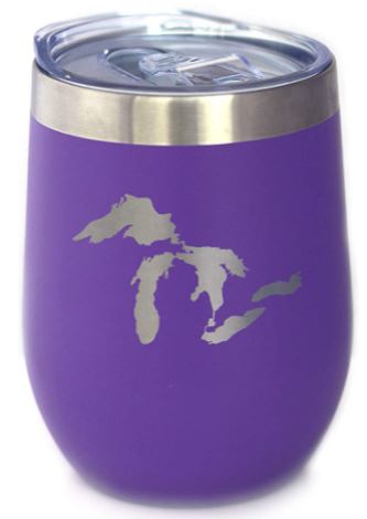 Cool wine gift for lovers of Lake Michigan, Lake Huron, Lake Erie, Lake Ontario, and Lake Superior! These Michigan wine tumblers will keep your wine cool or your coffee hot for hours!