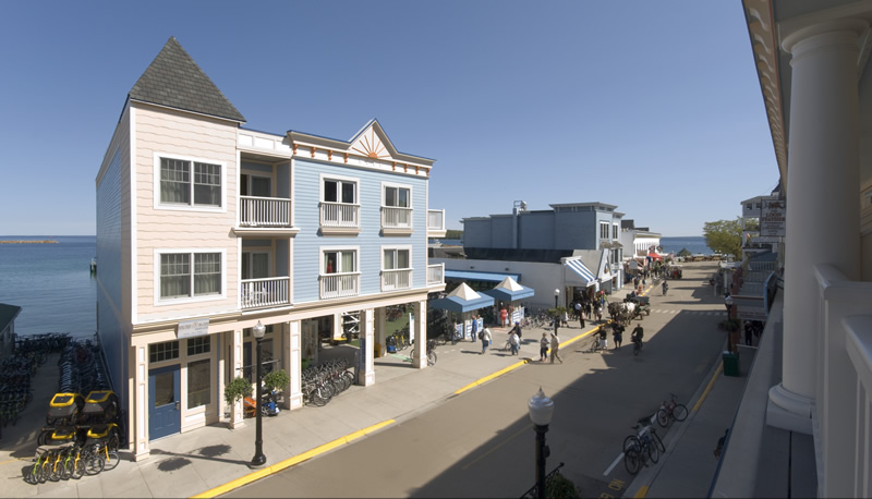 This is one of Mackinac Island's newest hotels. It is conveniently located on Main Street in the center of downtown. Some rooms have walkout balconies and beautiful views of Main Street and the Straits of Mackinac.